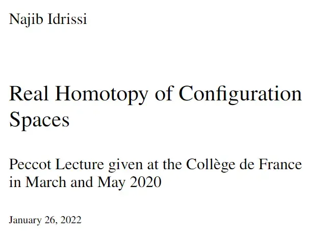 I wrote lecture notes to go along my lecture, entitled Real Homotopy of Configuration Spaces. I submitted a pre-proposal for the publication of these notes in October 2020, which was pre-approved, then I submitted the book in March 2021 for consideration. I am glad to report that today, I received the approval from the editorial board of Springer’s Lecture Notes in Mathematics series and the series editors of the CEMPI Subseries! My book is thus going to be published sometimes in the coming weeks/months. This is of course a great pleasure and honor, for which I am thankful. I would like to take this opportunity to also thank all the people who supported me through this process.